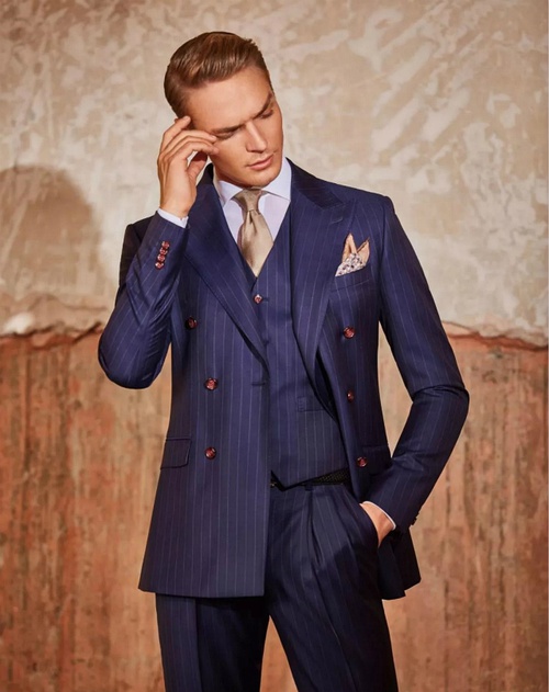 色彩和格纹、细节与品质,高档毛类西服面料彰显品质与尊贵,精心量体裁衣打造个性版型。